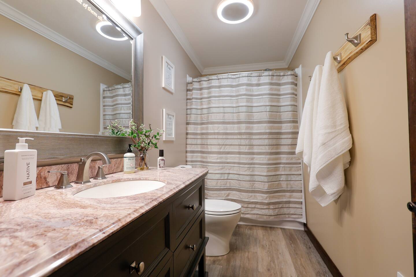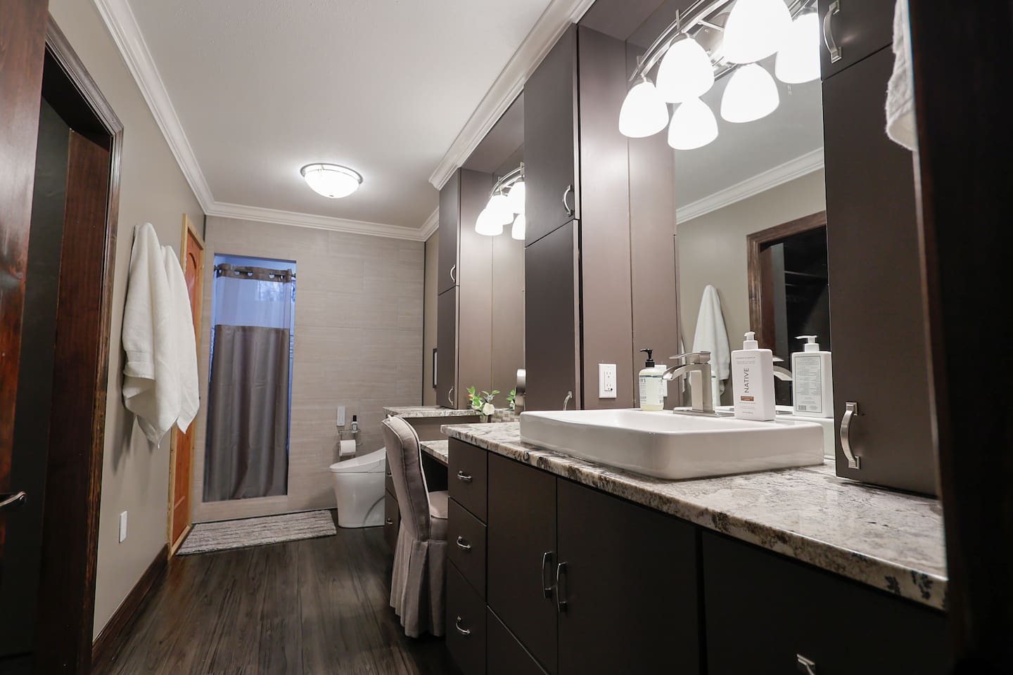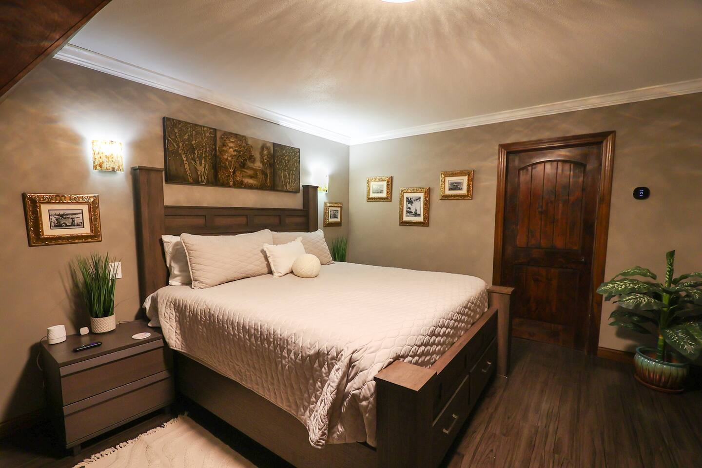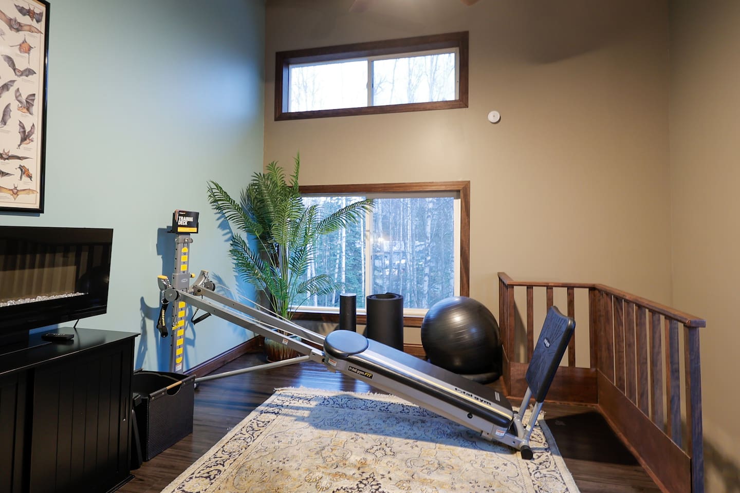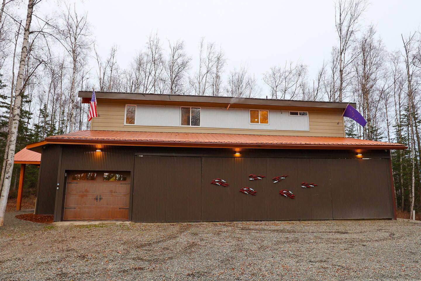 Step through the grand Arctic room entrance into a breathtaking two-story living and dining area featuring a stone electric fireplace, hunting lodge–style mounts, and large picture windows that bring the outdoors in. The gourmet kitchen is fully stocked and equipped for entertaining - complete with granite countertops, premium cookware, and a spacious walk-in pantry. A spiral staircase leads to the loft movie theater, boasting reclining theater seats, cozy floor seating, and an impressive 85” TV with an extensive movie library -perfect for cozy nights in. The master suite offers a plush memory foam king bed, Roku TV, a private loft office with mountain views, and a workout area featuring a Total Gym and workout accessories. The master bathroom includes granite counters, a custom walk-in closet, a luxury shower, smart toilet, and an indoor sauna for ultimate relaxation. The guest suite features a comfortable memory foam queen bed, Roku TV, and its own loft office area, ideal for remote work or reading with a view. The additional guest bedroom provides a cozy memory foam queen bed, Roku TV, and plenty of closet space - perfect for friends, family, or additional guests. The expansive laundry room includes a fully stocked linen closet and a wide selection of card and board games to entertain guests of all ages. In the warmer months, enjoy outdoor living at its finest with a second-story furnished deck featuring a gas grill, dining table with gas heater, fire pit seating area, and café-style seating. Down below, gather around the extra-large wood fire pit surrounded by Adirondack chairs for a true Alaskan evening under the stars. Whether you’re flying in, exploring Alaska’s wilderness, or simply seeking a peaceful escape, this exceptional Wasilla home offers unmatched comfort, privacy, and adventure. Highlights: ✈️ Runway access with aircraft tie-down parking 🏡 Grand three-story home on secluded birch tree lot 🔥 Two-story living room with stone electric fireplace 🎬 Loft movie theater with 85” TV, movie library and recliners 🛏️ Master suite with king memory foam bed, Roku TV, loft office, gym, and sauna 🛏️ Guest suite with queen memory foam bed, Roku TV and loft office 🛏️ Additional guest bedroom with queen memory foam bed and Roku TV 🍳 Gourmet kitchen with granite counters and full pantry 💪 Home gym and mountain-view office loft 🌲 Outdoor deck, gas grill, and multiple fire pit areas 🎲 Games, Roku TVs, and large laundry room