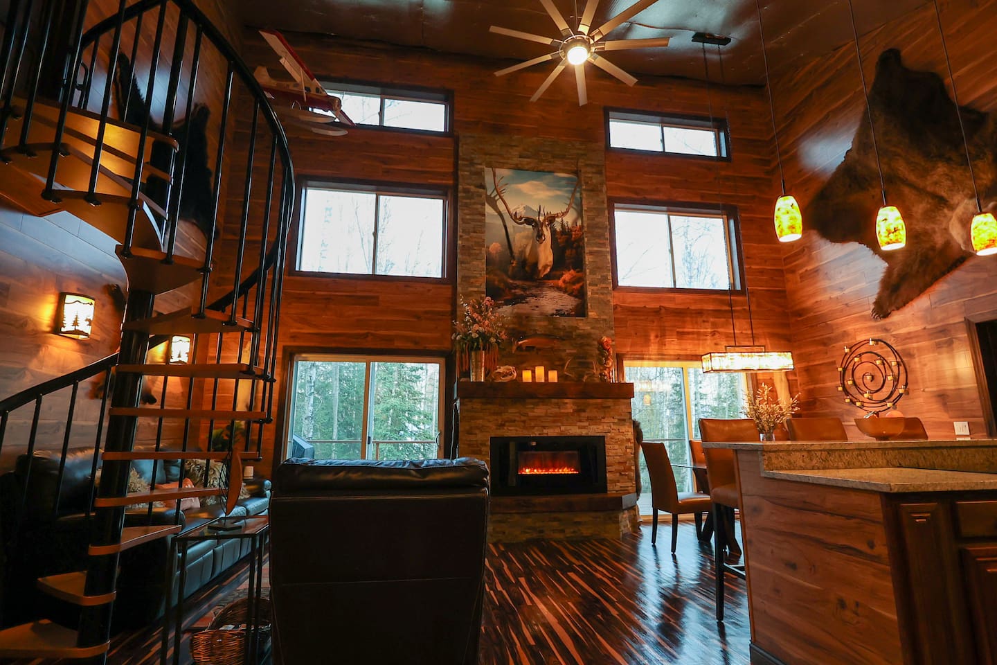 Escape to this Alaskan retreat nestled among birch trees in Wasilla, AK. This stunning three-story home combines rustic lodge charm with modern luxury, featuring private runway access, a gourmet kitchen, workout area and plush memory foam beds. Enjoy the six person sauna, loft movie theater with movie library that includes over 200 movies or large selection of card and board games. This home is perfect for aviation lovers, outdoor adventurers, or anyone seeking a one-of-a-kind Alaskan getaway.