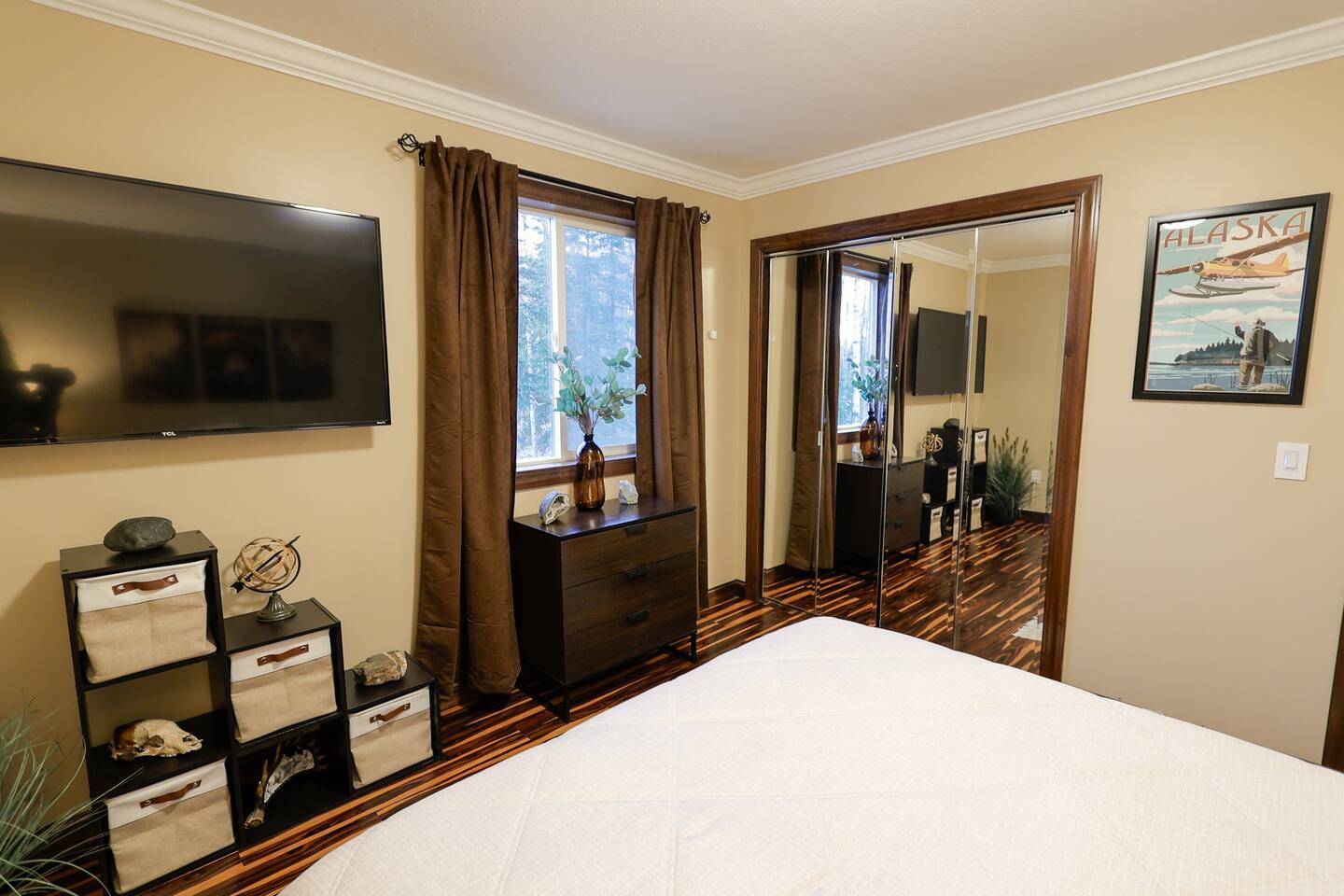 Guests enjoy private access to the main residence, featuring a convenient smart lock entry with a personalized code provided prior to arrival for seamless self check-in. Please note: Short-term guests (under 4 weeks) do not have access to the single-car garage. The aircraft hangar is not available for guest use. Guests are welcome to enjoy community runway access and an on-site aircraft tie-down area, perfect for visiting pilots flying in for their Alaskan adventure.